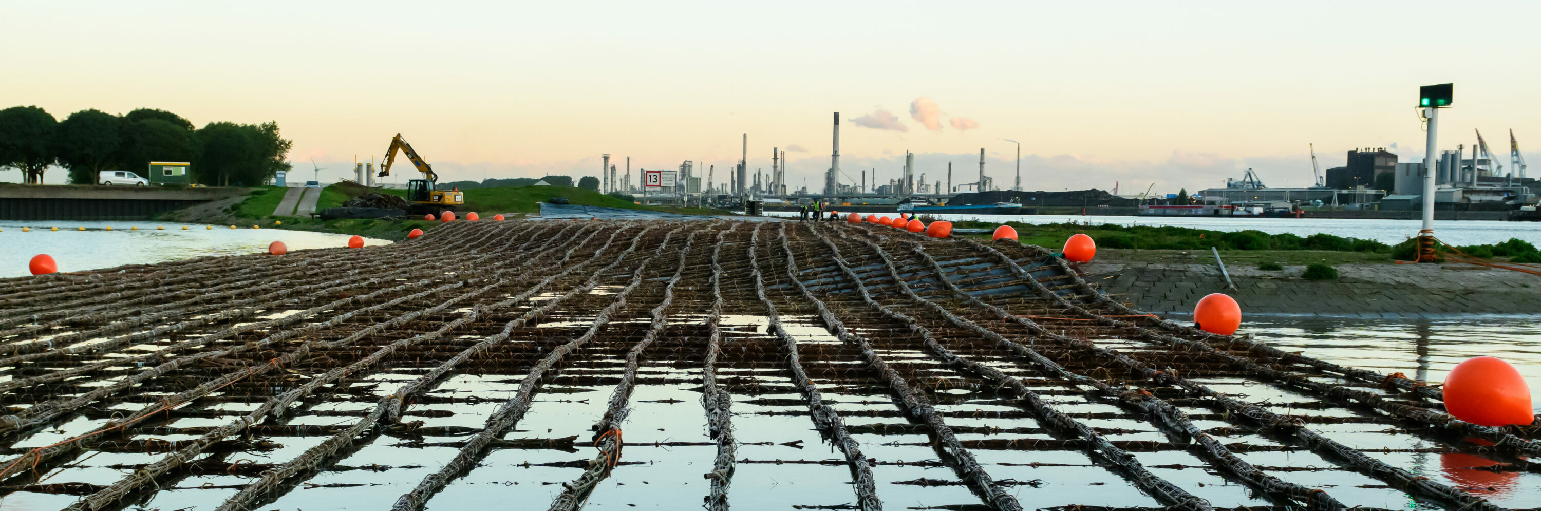 De waterbodem en oevers bij rivieren, kusten en kunstwerken moeten worden beschermd tegen erosie en de invloed van stroming en golfslag. Wij beschikken over de kennis en kunde en het materieel om de stabiliteit van waterbodems en oeverzones te verstevigen of herstellen. Waar nodig monitoren en onderhouden we die vervolgens.