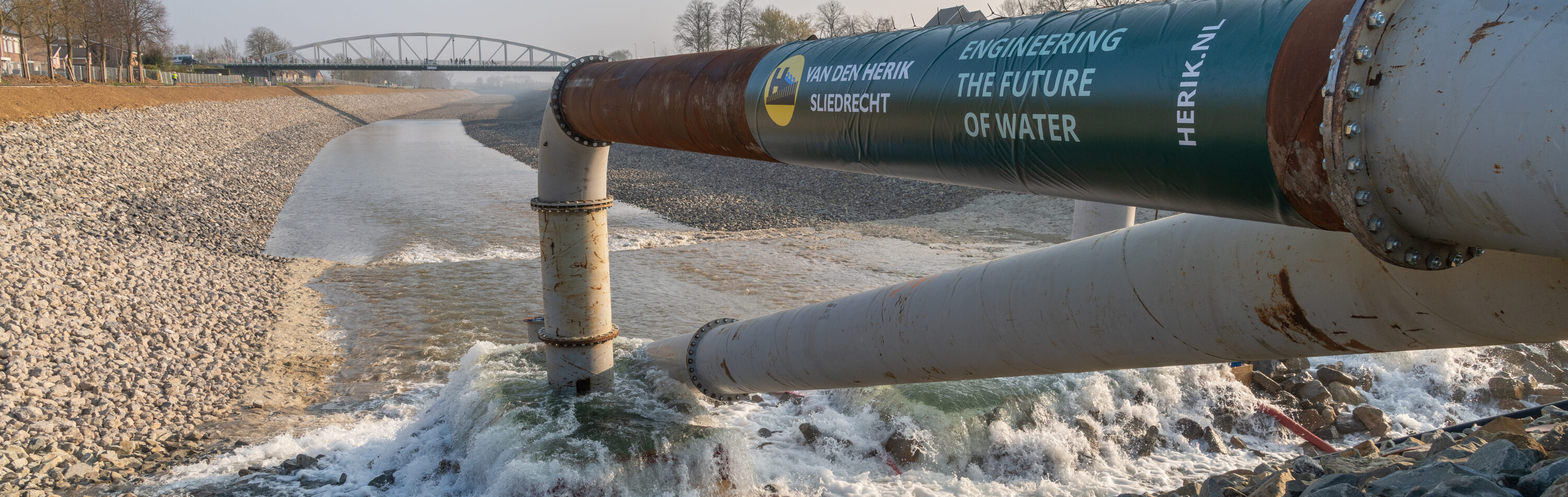 De leidingen hebben een doorsnede van 1 meter. Door middel van kleppen kunnen we het water reguleren. Op die manier kunnen we de doorstroming per leiding precies regelen.