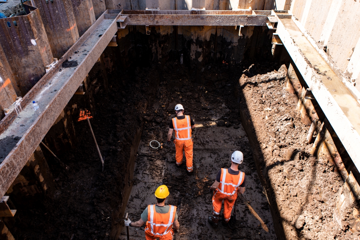 Daarnaast is er voor dit bijzondere werk in samenwerking met Gebr. De Koning een speciale bouwkuip constructie uitgedacht en geplaatst. Dat hebben zij met veel precisie en in de krappe ruimte rond deze bom vakkundig en trillingvrij gedaan door gebruik te maken van een Silent Piler.