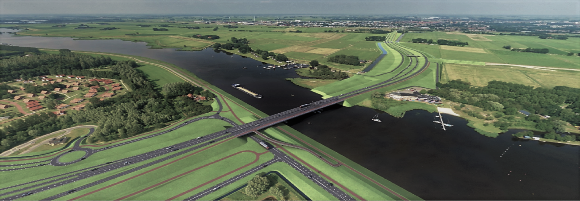 De werkzaamheden bestonden uit: de bouw van een nieuwe, gedeeltelijk beweegbare brug (300 m) met grotere doorvaarthoogte, de bouw van een viaduct over de N307 voor lokaal verkeer, dijken aanpassen aan de nieuwe situatie, de infrastructuur (N307) vervangen met gescheiden wegen voor langzaam en snel verkeer, de aanleg van diverse kunstwerken waaronder een duikerbrug en diverse faunapassages, de sloop van de Roggebotsluis en de bestaande brug en de (her)inrichting van het landschap.