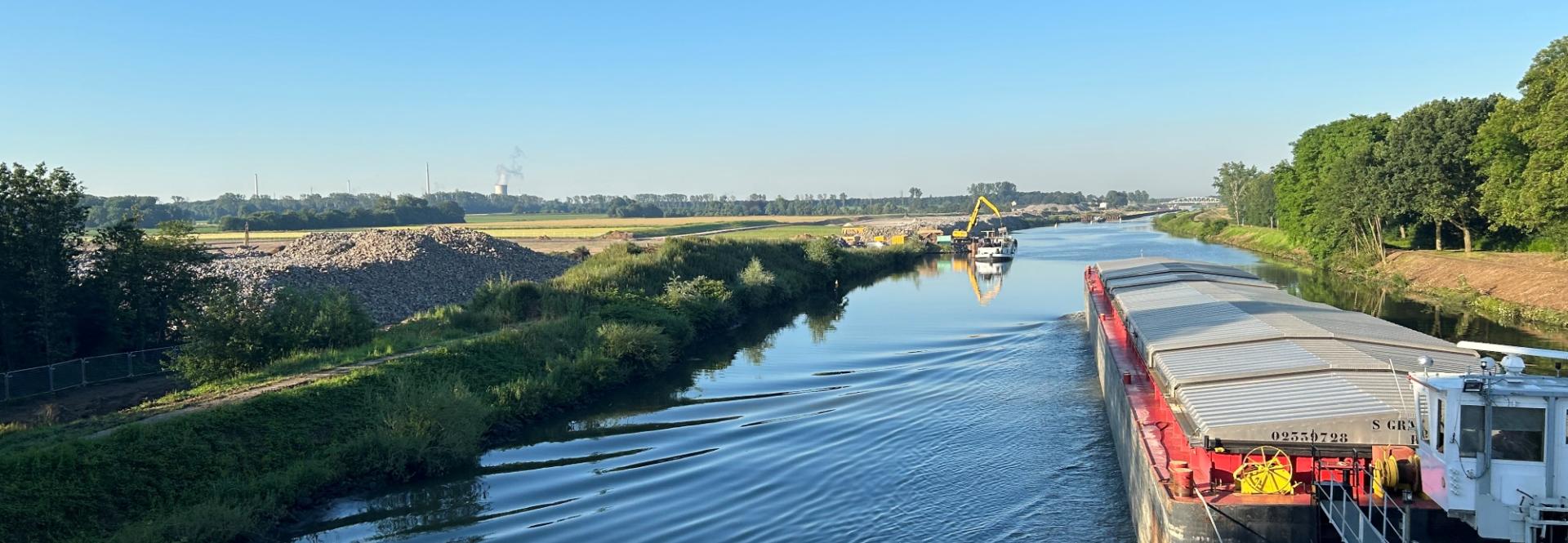 Auf dem Kanalboden in der Nähe der Schleuse Born befindet sich eine dicke Schlammschicht. Um den Schlick zu entfernen, werden wir am Montag, den 10. Juni, mit den Baggerarbeiten beginnen. Die Schifffahrt bleibt möglich und kann den schwimmenden Arbeitsponton mit angepasster Geschwindigkeit passieren. Wenn wir den Schlick jetzt entfernen, wird die Vertiefung später einfacher sein. Die Lieferung von Materialien ist ebenfalls in vollem Gange, um für die Zeit der Sperrung so gut wie möglich vorbereitet zu sein.