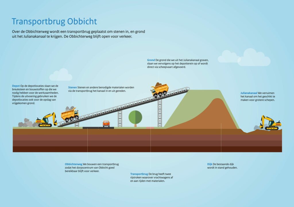 Het Julianakanaal wordt verbreed voor de scheepvaart. Om dat mogelijk te maken zijn er eerder al diverse werkzaamheden met succes uitgevoerd. Bij de verruiming van het gedeelte tussen Berg en Obbicht, het laatste stuk dat nog op de planning stond, werd gebruikgemaakt van een bouwkuip die de scheepvaart via een smalle strook kon passeren. Door de bodemgesteldheid van het kanaal op dit traject is de bouwkuip bezweken en zijn de verruimingswerkzaamheden vorig jaar gestaakt.